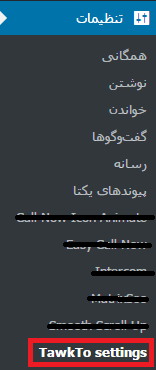 این افزونه را نصب کنید سپس از قسمت تنظیمات به روی گزینه TawkTo Setting کلیک کنید